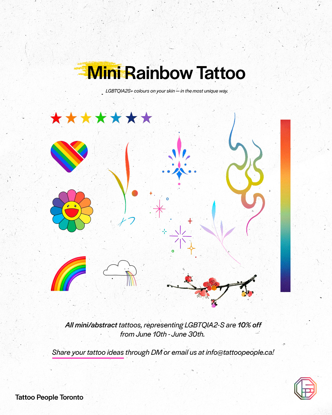 I planned and promoted this Pride Month flash tattoo event to offer joyful, inclusive body art for LGBTQ+ clients.